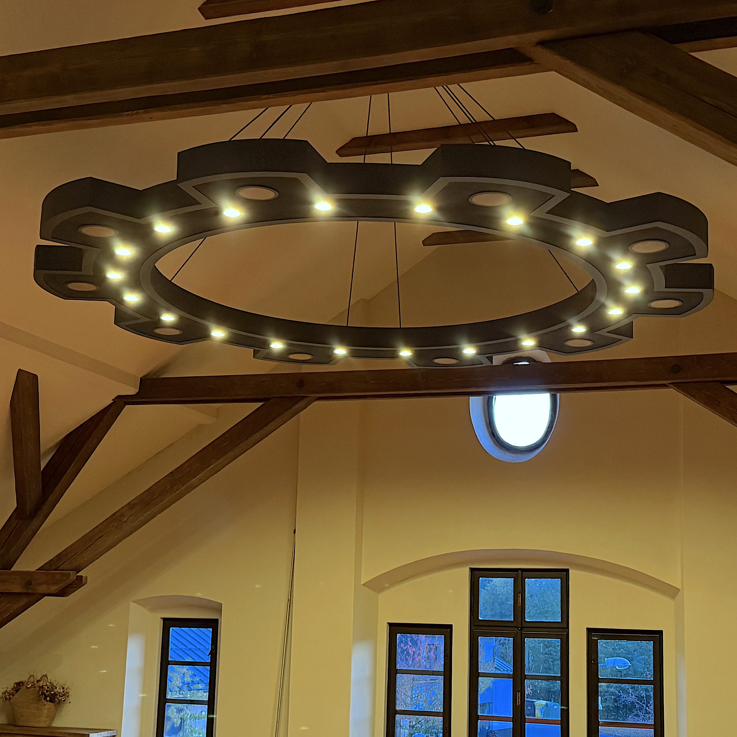 Navrhli jsme a vyrobili rovněž dominantní světelné objekty, od obřích lustrů o průměru čtyř metrů až po originální svítidla s jemným detailem.